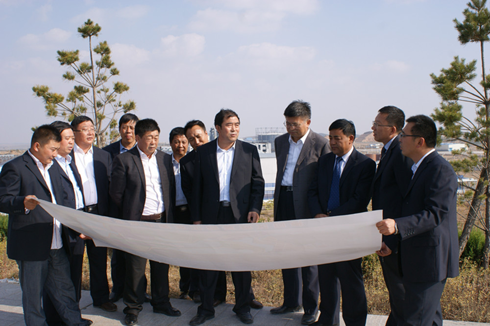 榆阳区区长助理、麻黄梁工业集中区管委会主任刘兴伟(右五)和领导班子成员现场研究制定集中区规划