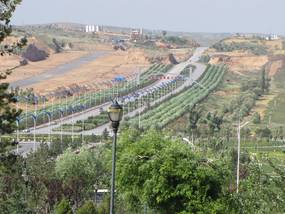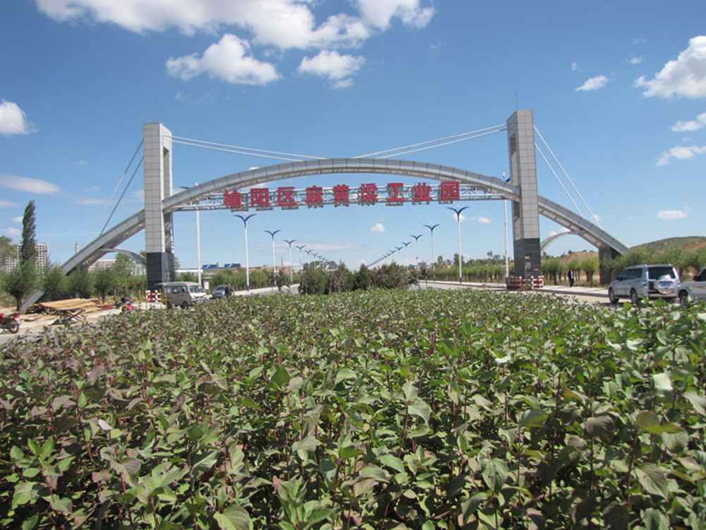 榆阳区麻黄梁工业集中区大门附近良好的环境绿化